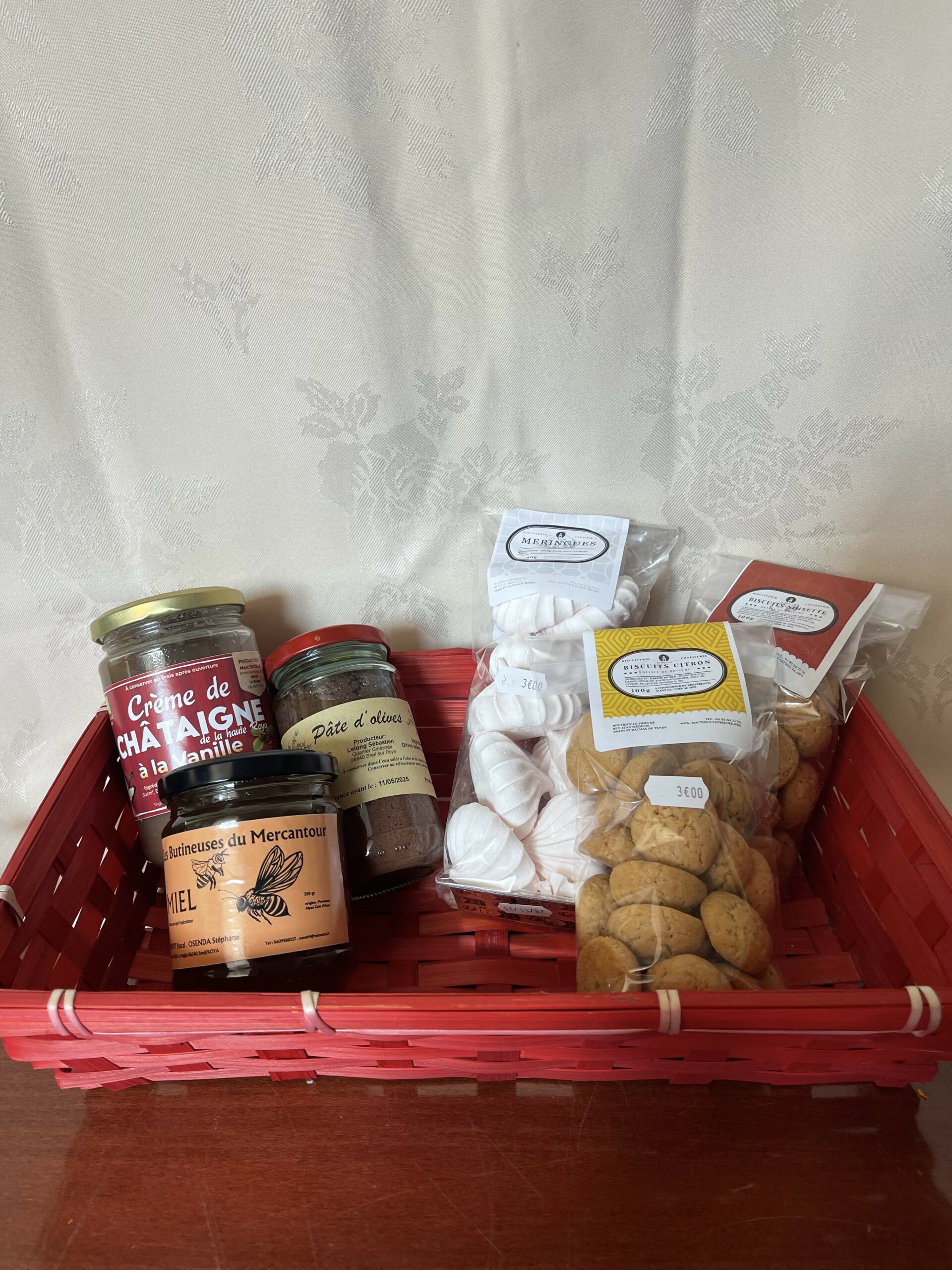 - 3 sachets au choix: biscuits (citron, cookies, noisette, épices de noël, grana), guimauves, meringues ;